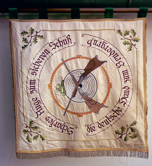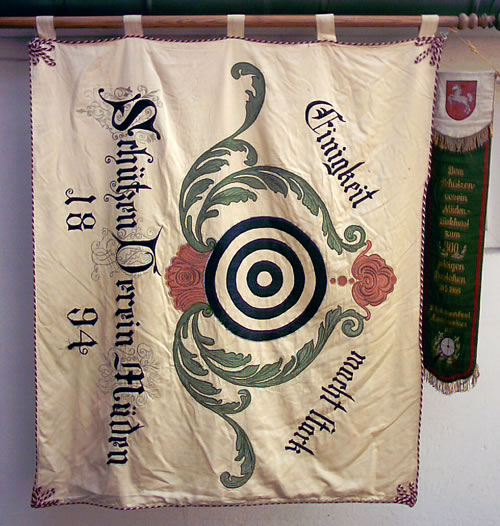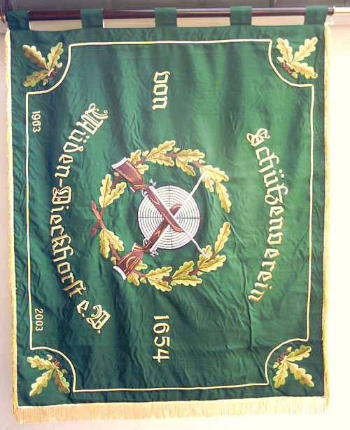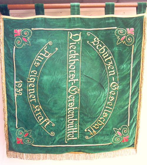 Dieckhorst-Gerstenbüttler Fahne (Vorderseite) Motto: Scharfes Auge zum sicheren Schuß, die deutsche Hand zum Brudergruß.