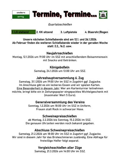 6. Zug - Termine