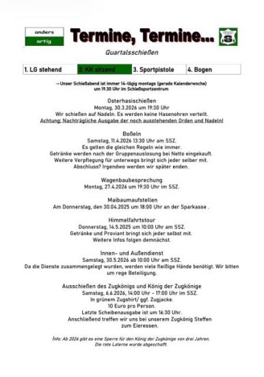 6. Zug - Termine